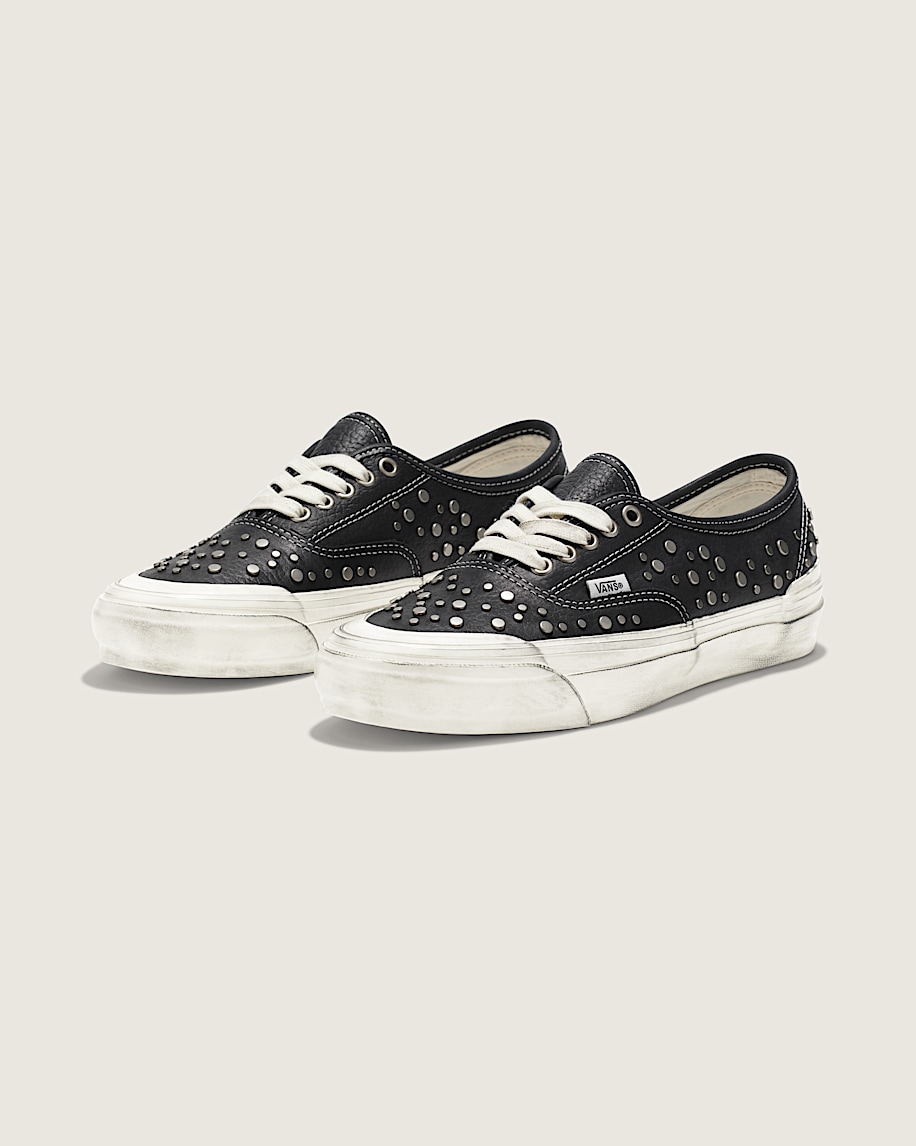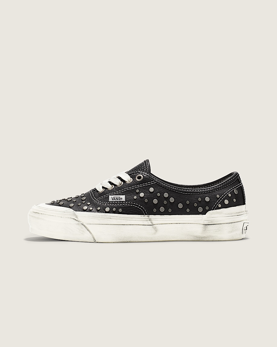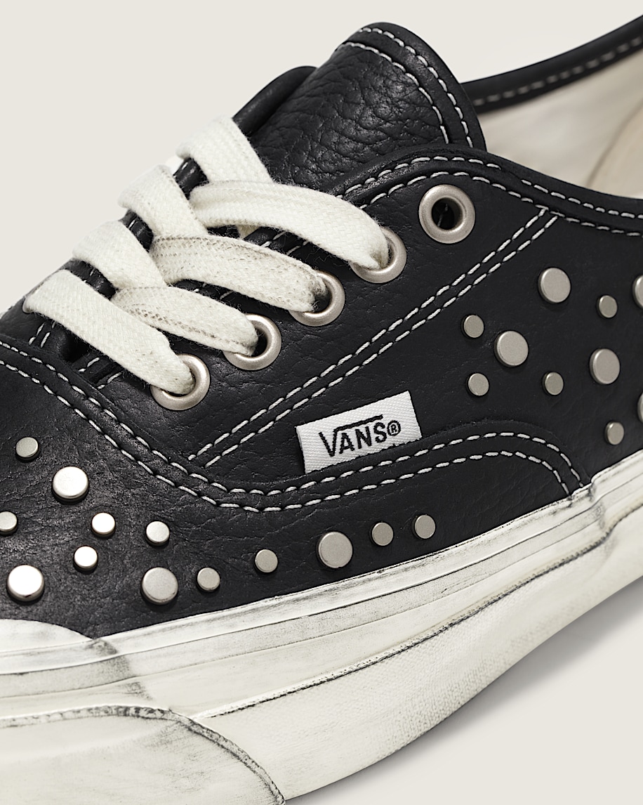 Heritage low top shoesLeather upper for a smooth, durable finishMetal studs cover vamp and quarter panelsCotton lace and metal eyeletsHigher sidewall with heavy distressed finishFoxing tape inspired by original 90's Osnaburg reinforced outsolesUpgraded footbed and refined construction combine for a more seamless fitSola Foam ADC (All-Day Comfort) insole for soft and durable cushioning, 30% bio-based materialSignature waffle outsole pattern for reliable grip since '66