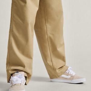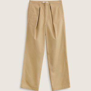Material: 100% CottonWide leg chino pant with an adjustable pleat detail at the front waistInterior woven labelBaggy fitRaw edge detail at the hem and sleevesGrant is 62.5 and I swearing a size 30Haro is 59 and is wearing a size