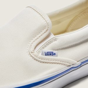 Signature Slip-On shoe8 oz canvas upper for a light but durable finishLeather collar lining, woven flag labelHigher sidewall with gloss finishFoxing tape inspired by original 90's Osnaburg reinforced outsolesSola Foam ADC (All-Day Comfort) insole, soft and durable cushioning, 30% bio-based material