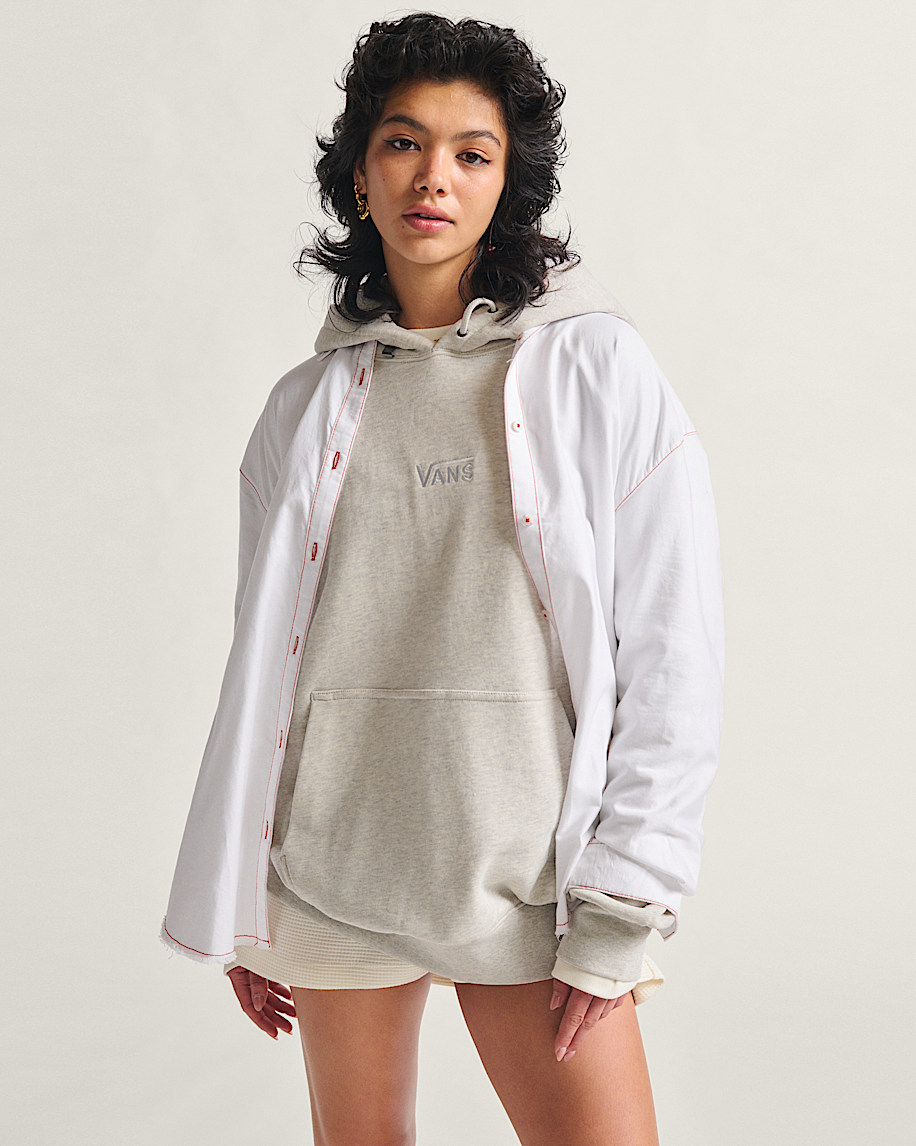 Heavyweight brushed fleece for warmth and structureRaglan sleeves for natural movementTonal embroidered Vans logo at chestKangaroo pocket for everyday carryRibbed cuffs and hem for secure fitClean finish with no drawcords or extrasSoft interior for added comfort100% cotton blend