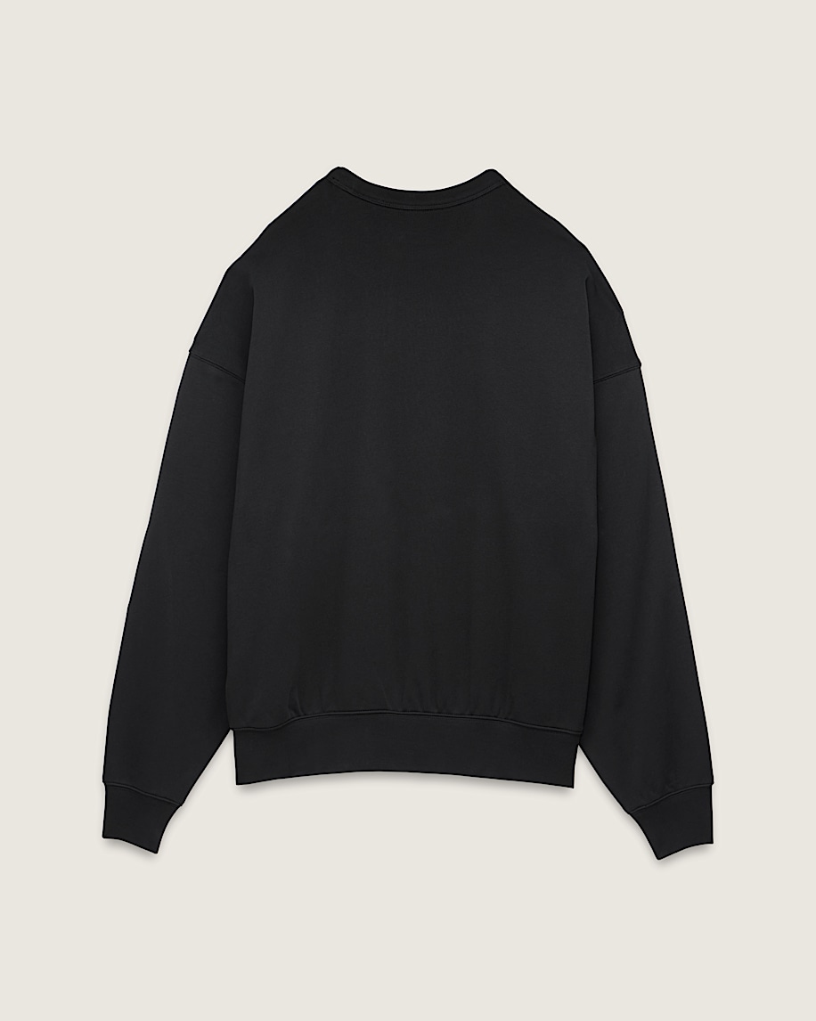 Material: 100% Cotton Blend French Terry, fleece linedLong sleeve pullover with rib binding along top shoulder down to side sleeve, a tonal embroidery logo at chest center and an interior woven labelMitchell is 5'10" and is wearing a size MSephira is 5'8.5" and is wearing a size S