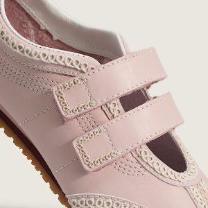 Low-profile, vintage track-inspired sneakersInspired by ’80s Serio Style 84Leather upper for a smooth, durable finishPadded collar for comfort and shapeDual hook-and-loop straps for a secure fit and easy on/offEVA midsole and wedge for lightweight cushioning and durabilityMinimal lining for a soft, barely-there feelOrthoLite® foam insole for cushioningRubber outsole with Vans’ signature waffle pattern for superior gripEmbroidered SideStripe™ for a small hit of heritageCrochet lace overlays