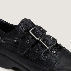 Whether skating the streets or walking the runway, Efron proudly blurs the lines between core skate and high fashion. When designing her Premium Old Skool, she brought her femme-meets-punk aesthetic for a truly unique take on the iconic silhouette. Since Efron spends a lot of time skating in flat shoes, she added a heel to the custom outsole and designed the upper with rich, all-black leather, metal hardware and a corset lacing system. This is the Old Skool like you’ve never seen it.