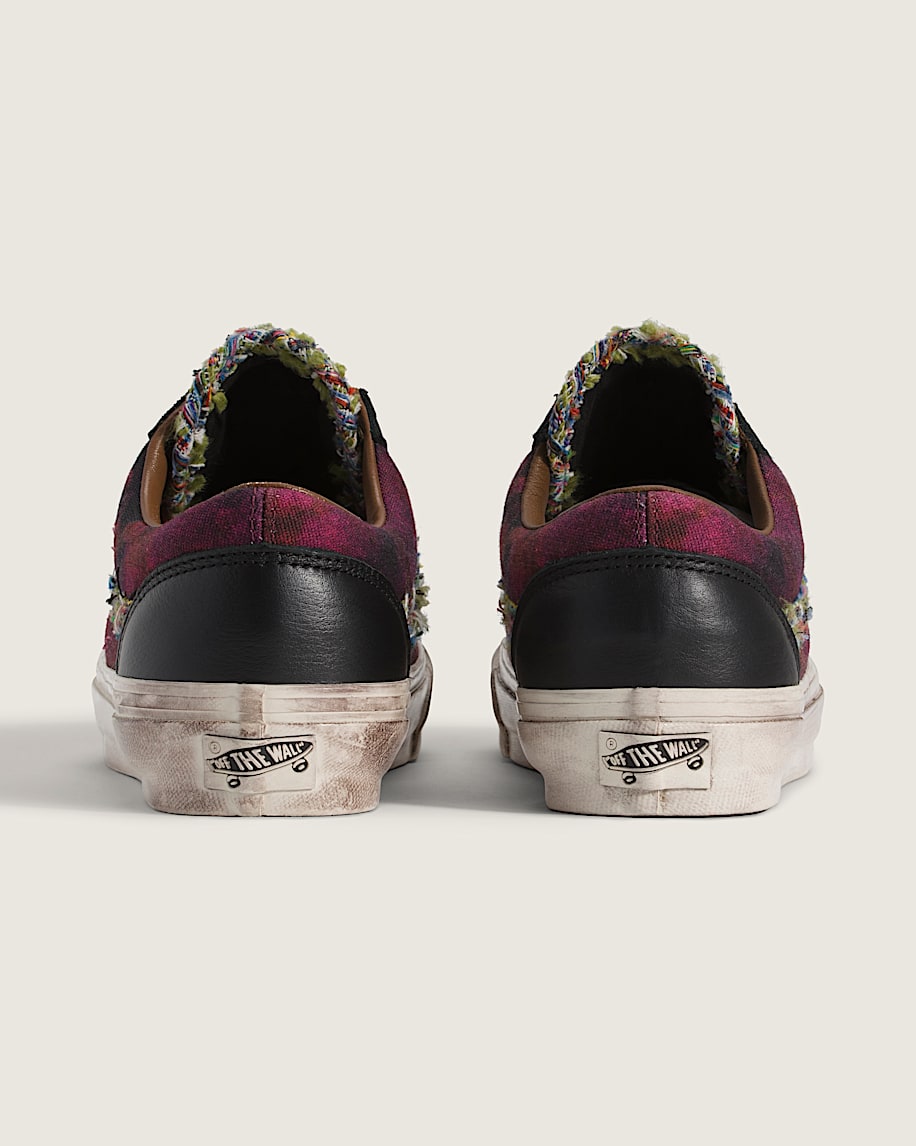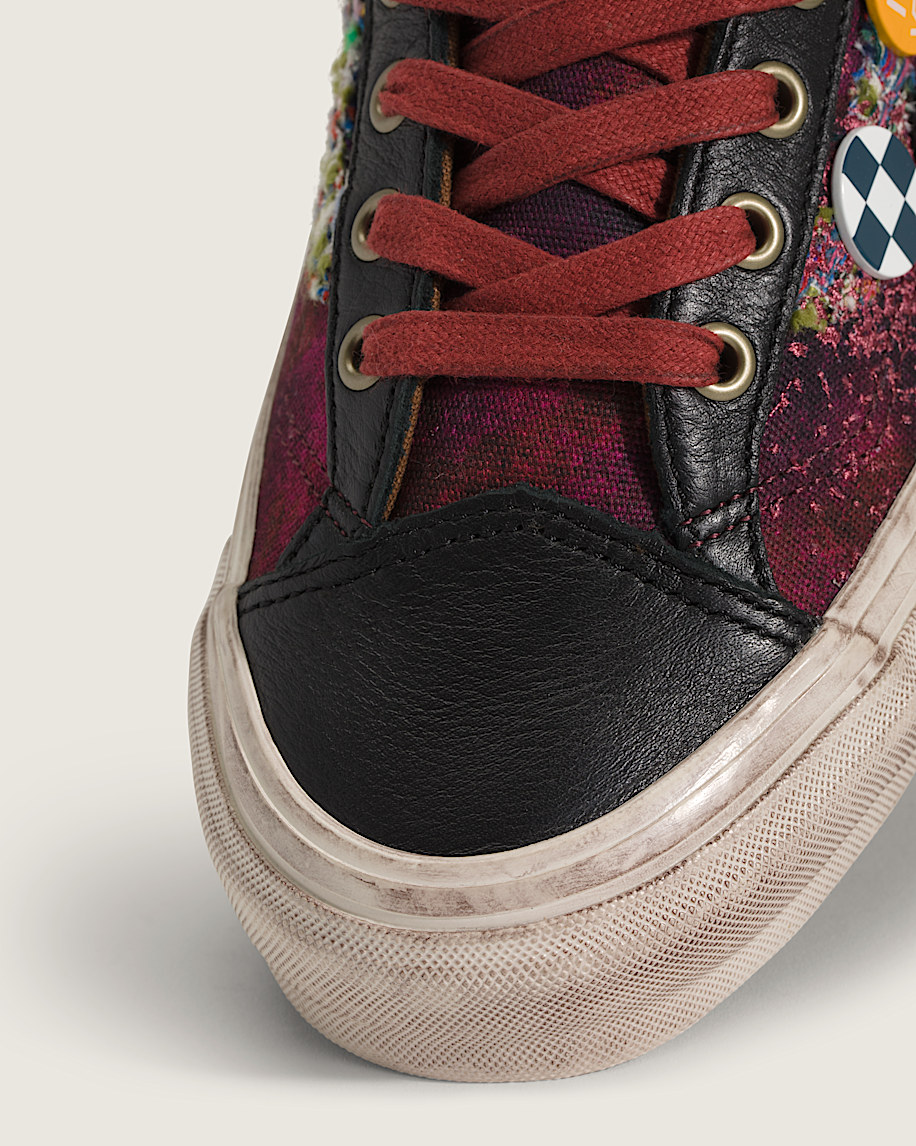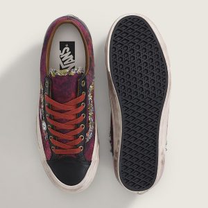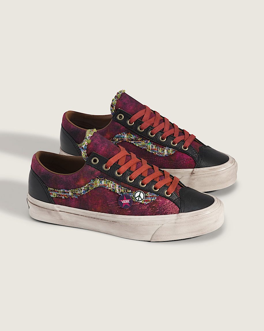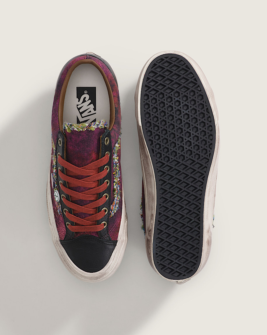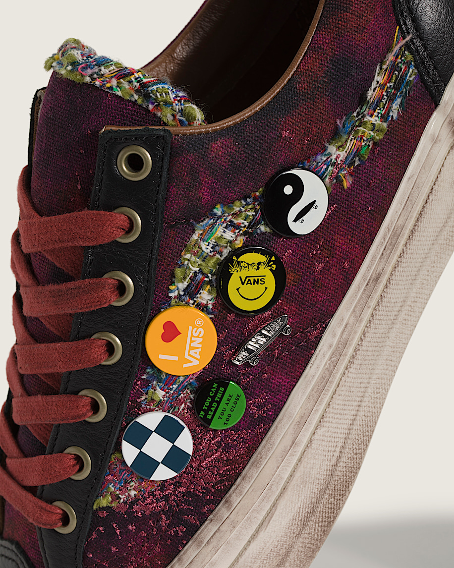Skate-inspired, low-top shoeCanvas upper with spray-painted designLace-up closure for an adjustable fitSoft leather collar for enhanced comfortHigher sidewall with greased finishFoxing tape inspired by original 90's Osnaburg reinforced outsolesUpgraded footbed and refined construction combine for a more seamless fitSola Foam ADC (All-Day Comfort) insole for soft and durable cushioning, it is made using at least 30% biobased PU foam partially derived from plants and it is USDA Certified BiobasedSignature waffle outsole pattern for reliable grip since '66Iconic leather Sidestripe™ insigniaVans-themed "Souvenir" buttons