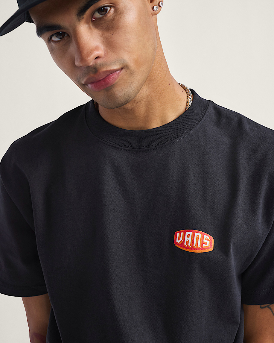 The Raised Up T-Shirt features short sleeves for a casual, everyday style. It's topped with screen printed artwork for a long-lasting design, featuring a stylized Vans logo on the chest.
