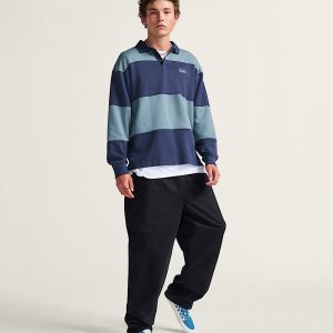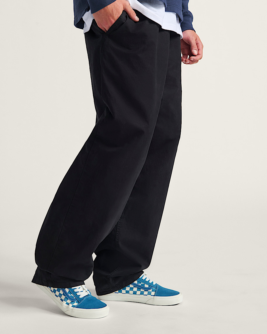 Twill fabric pantsComfortable elastic waist with drawcordFront slant hand pockets with coin pocketRear welt pocketsEmbroidered 'Drop-V' bartack on front right and left rear pocketKey loop detail on rear waistbandFlag label for added branding when cuffedBaggy tapered fit so you can move with ease17.5'' leg opening100% organic cotton