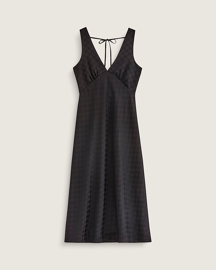 Unleash your inner pin-up in the Sandra Checkerboard Slip Dress, constructed of a satin-like charmeuse fabric with a subtle checkerboard pattern as a nod to Vans® heritage style. A bias cut and a deep-V neckline make for a flattering fit.