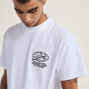 Fix your fashion with the Service Repair T-Shirt, featuring short sleeves for a casual, everyday style. Screen print artwork for a long-lasting design points to a fictional repair shop at the address for Vans HQ.