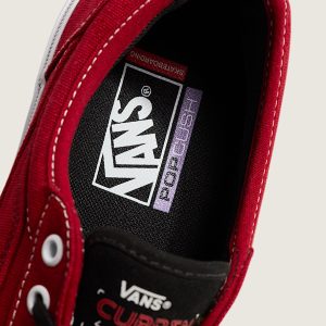 Designed By Curren CaplesLeather upper for a durable and elevated lookPadded collar for support and comfortLace closure for an adjustable fitPopCush™ footbeds offer impact protection and reduce leg fatigueDuraCap™ underlays add extra durability and protection where it matters mostSickStick™ rubber—our stickiest yet—keeps you glued to your boardCustom SideStripe™ tread-pattern outsole for on-board grip and durabilityVulcanized sole for superior board feel and flexibilityVans X Curren Caples print on tongueVans Skateboarding logo heel scabVans Checkerboard hangflag