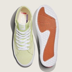 Signature high top skate shoeDesigned for skateboarding with enhanced durability and performance features100% organic cotton and suede upperMade using recycled, renewable, and/or regenerative materialsUnpadded, low-profile cuff for a minimalist fitLace-up closure for a secure and adjustable fitInternal tongue straps prevents it from sliding during movementLow-profile footbed balances boardfeel and impact protectionDURACAP™ underlays and toe cap add reinforcement to high-wear areasSickStick™ rubber—our stickiest yet—keeps you glued to your boardUniversal fit designed by Lizzie to meet the needs of a wider range of skateboardersOutsole utilizes flex grooves, waffle lugs and micro-waffle pattern for grip and flexibilityIconic Sidestripe™ insignia