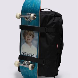 Duffle/backpack hybrid design for flexible carryMain zippered compartment holds gear for longer tripsSkateboard strap secures your board when not ridingCordura® construction adds long-lasting durabilityTop carry handle for quick pickupAdjustable shoulder straps for backpack carrySide duffle-style handle offers another carry optionDimensions: 23.3" x 16" x 10.3"Capacity: 60 litersMaterial: 100% nylon 500D Cordura