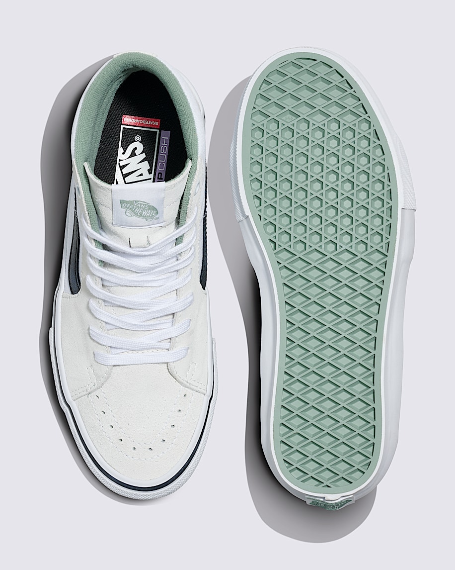INCREASED DURABILITY – DURACAP reinforced materials, deeper knurl texture on the toe bumpers, and higher sidewall heights provide a heritage look with increased durability and protection.FULLY REDESIGNED UPPERS – Reconstructed with a molded heel counter and internal tongue straps for a locked-in fit and more board control.LEGENDARY GRIP – Our proprietary SickStick gum rubber compound is our stickiest rubber yet.POPCUSH CUSHIONING – Our best cushioning and impact protection. PopCush energy return footbeds protect your feet while helping to lessen leg fatigue for longer skate sessions.ICONIC STYLING – A mix of suede and 10 oz canvas has been used at the upper, maintaining the aesthetic of the original Sk8-Hi, while subtle colors pops add a fresh look.