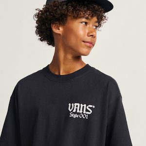 With short sleeves for a casual, everyday style, the Style 001 T-shirt will instantly become a wardrobe top ten. Long-lasting screen printed graphics featuring a stylized Vans logo on the front and an Off the Wall scripted alphabet chart on the back add a streetwear edge to a classic silhouette.