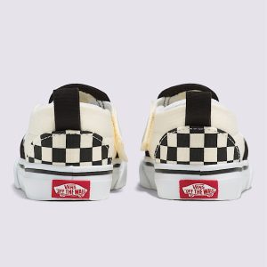 Iconic Slip-On shoe made for toddlersSide hook-and-loop closuresHeel pull tabsLow profile textile uppersCheckerboard printSupportive padded collarsElastic side accentsSignature rubber waffle outsoles