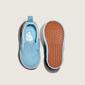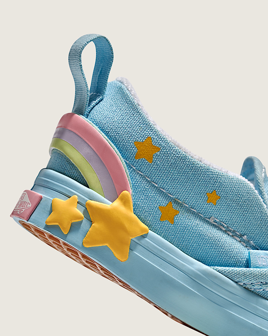 Toddler slip on shoeRecommended for ages 9 months to 4 yearsCanvas upper for a durable and classic lookPadded collar for enhanced support and comfortSide hook-and-loop closures for easy on and offHeel pull assists with slipping the shoes on quicklyDurable rubber sidewall with classic foxing stripeReinforced toe bumper for heavy wear and tear.Signature waffle outsole pattern for reliable grip since '66Vulcanized sole for superior board feel and flexibility