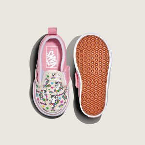 Toddler slip on shoeRecommended for ages 9 months to 4 yearsCanvas upper for a durable and classic lookPadded collar for enhanced support and comfortSide hook-and-loop closures for easy on and offHeel pull assists with slipping the shoes on quicklyDurable rubber sidewall with classic foxing stripeReinforced toe bumper for heavy wear and tear.Signature waffle outsole pattern for reliable grip since '66Vulcanized sole for superior board feel and flexibility