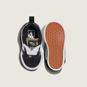 Toddlers 90s low top shoeRecommended for ages 9 months to 4 yearsSturdy suede and canvas uppersOversized tongue and padded collar for extra comfortElastic lace function like slip-ons for easy on and offHeel pulls for ease of entryDurable rubber sidewall with classic foxing stripeReinforced toe bumper for heavy wear and tearSignature waffle outsole pattern for reliable grip since '66Vulcanized sole for superior board feel and flexibilityPuffy 3D Sidestripe™ blends throwback style with a modern edgeCheckerboard branding is unmistakably Vans