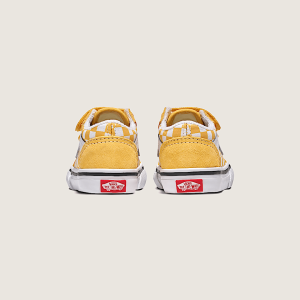 Toddler low-top shoeRecommended for ages 9 months to 4 yearsSturdy suede and canvas uppersPadded collar for enhanced support and comfortDouble hook-and-loop closures for easy on-and-offDurable rubber sidewall with classic foxing stripeReinforced toe bumper for heavy wear and tearSignature waffle outsole pattern for reliable grip since '66Vulcanized sole for superior board feel and flexibilityIconic Sidestripe™ insigniaCheckerboard branding is unmistakably Vans