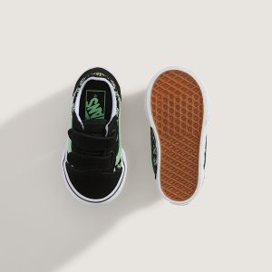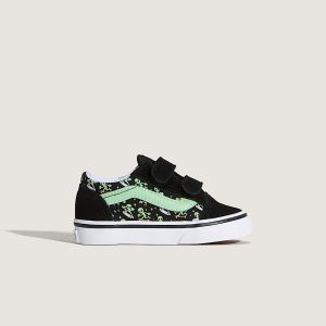The Toddler Old Skool V mixes classic skate style with an extraterrestrial twist. Featuring hook-and-loop closures for easy on-and-off, plus glow-in-the-dark alien graphics, this all-black silhouette with a pop of green is made for tiny explorers who think outside the atmosphere.