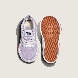 Toddler high top shoeRecommended for ages 9 months to 4 yearsSturdy suede and canvas uppersPadded collar for enhanced support and comfortDouble hook-and-loop closures for easy on and offTongue pull assists with slipping the shoes on quicklyDurable rubber sidewall with classic foxing stripeReinforced toe bumper for heavy wear and tearSignature waffle outsole pattern for reliable grip since '66Vulcanized sole for superior board feel and flexibilityIconic Sidestripe™ insignia