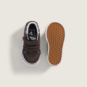 Toddlers' Sk8-Mid V style shoeRecommended for ages 9 months to 4 yearsZonal MTE-1 Primaloft insulation package uses a high-quality microfiber thermal insulation system to mimic the warmth-providing properties of down for warmth without internal moistureMTE-1s lugged outsole provides a throw-stuff-at-me ready design using multi-directional treads, multi-level surfacing, and a sipped tire-like design for increased traction in wet conditionsShock-absorbing EVA midsole provides cushioning without added weightLeather and textile upper for durabilityWater-resistant upper provides a splash and puddle guard around the shoe and over the toe for reliable, comfortable, and breathable moisture management protectionReinforced toe bumper for heavy wear and tearIconic Sidestripe™ insigniaVulcanized build for the original look and feelDouble hook-and-loop closures for easy on and off