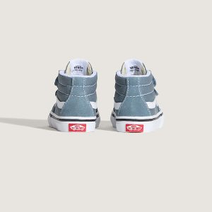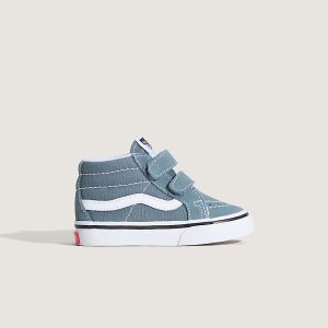 Toddlers' Sk8-Mid V style shoeRecommended for ages 9 months to 4 yearsLeather upper for a smooth, durable finishPadded collar for support and comfortTongue pull for easy entry and adjustabilityRubber sidewall with classic foxing stripeReinforced toe bumper for heavy wear and tearIconic Sidestripe™ insigniaSignature waffle outsole pattern for reliable grip since '66Vulcanized build for the original look and feelDouble hook-and-loop closures for easy on and off
