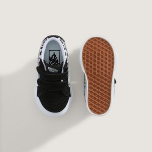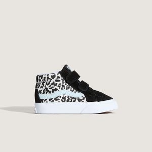 Toddlers' Sk8-Mid V style shoeRecommended for ages 9 months to 4 yearsLeather upper for a smooth, durable finishPadded collar for support and comfortTongue pull for easy entry and adjustabilityRubber sidewall with classic foxing stripeReinforced toe bumper for heavy wear and tearIconic Sidestripe™ insigniaSignature waffle outsole pattern for reliable grip since '66Vulcanized build for the original look and feelDouble hook-and-loop closures for easy on and off