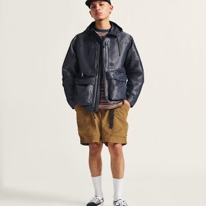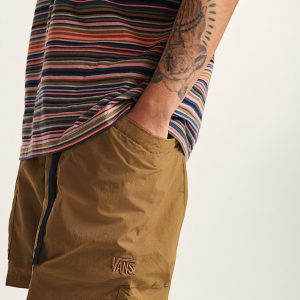 Ripstop fabrication to guard against tearsDurable Water Repellant coating for water resistanceIntegrated adjustable webbing beltWaistband with soft lining for comfortCargo pockets over side seamsExposed zipper back pocketEmbroidered logoPackable into the back pocketOutseam: 19"100% recycled nylon fabric