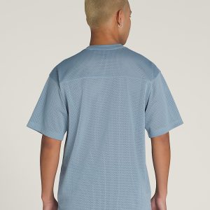 Mesh pieced yoke football jerseyScreenprinted graphic on the frontWoven label at bottom hemLoose fit for a roomy look and a free-flowing shape100% polyester