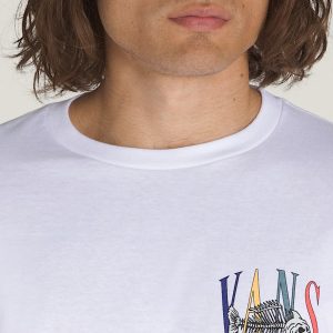 The Vans Resort T-Shirt is a classic fit short sleeve crew neck T-shirt with a screenprinted graphic of a Vans® logo on the left chest, and a fish skeleton interwoven with Vans on the back.