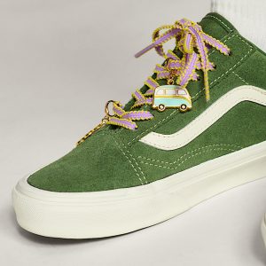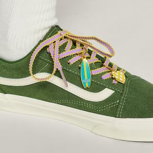 Nothing says Southern California like surfing, classic vans, and the outdoors, which is why Vans designed shoe charms to celebrate each of these unique joys. A surfboard, VW van, checker heart, and smiling daisy capture an easygoing way of life. The charms are made from metal to dress up or down, and water resistant so you can roam where you please. Finish the look with a pink and yellow flat, braided shoelace for an added pop of color.