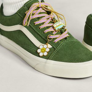 Nothing says Southern California like surfing, classic vans, and the outdoors, which is why Vans designed shoe charms to celebrate each of these unique joys. A surfboard, VW van, checker heart, and smiling daisy capture an easygoing way of life. The charms are made from metal to dress up or down, and water resistant so you can roam where you please. Finish the look with a pink and yellow flat, braided shoelace for an added pop of color.
