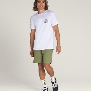 The Vans Universe T-Shirt is a classic fit short sleeve crew neck T-shirt with a screenprinted graphic of a Vans® logo in bones on the front, and a devious skeleton leaning over Vans branding on the back.