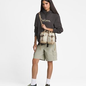 Chalk bag rucksackDuo-bag with drawstring closures on the sidesAdjustable strap allows for multiple carrying optionsExternal cargo pockets with secured flap closuresExternal zip pockets on body sideFaux leather lash tab at pocketVans x n.m.® co-branding on left bagCheckerboard polyester-lined interiorRecycled canvas