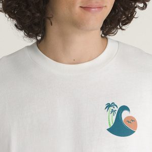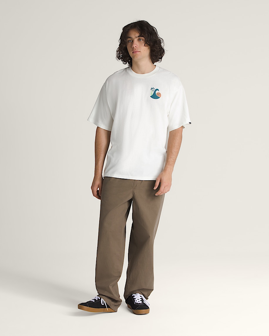 Mens short sleeve teeRibbed neckline for stuctureThalia Surf graphic at chest and backVans woven label on left sleeveLoose fit100% cotton