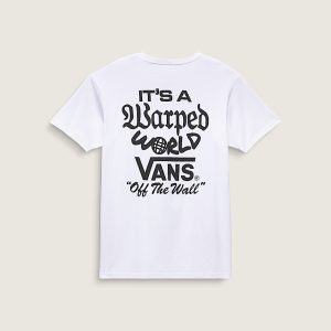 Take a skewed view in the Warped World T-Shirt, a classic fit short sleeve crew neck T-shirt with a screenprinted graphic of the Vans® logo on the front, and a statement-making graphic on the back.