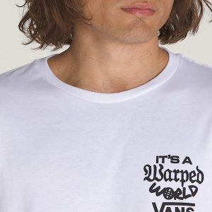 Take a skewed view in the Warped World T-Shirt, a classic fit short sleeve crew neck T-shirt with a screenprinted graphic of the Vans® logo on the front, and a statement-making graphic on the back.